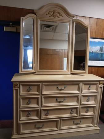 Bedroom set, queen headboard, 1 night stand, dresser with 3 way mirror, and hutch