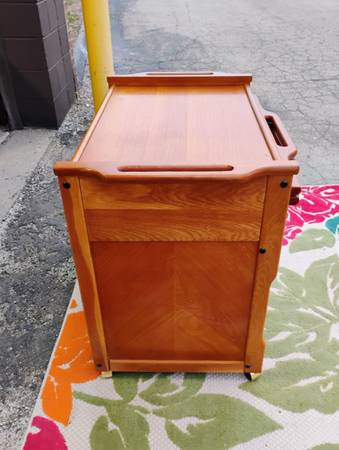 Teak Rolling Cart Side Server Unmarked 30h 34w 21d 13d pull out tray We don't text any numbers use any codes accept checks give out our number or respond to available is it available or I am...