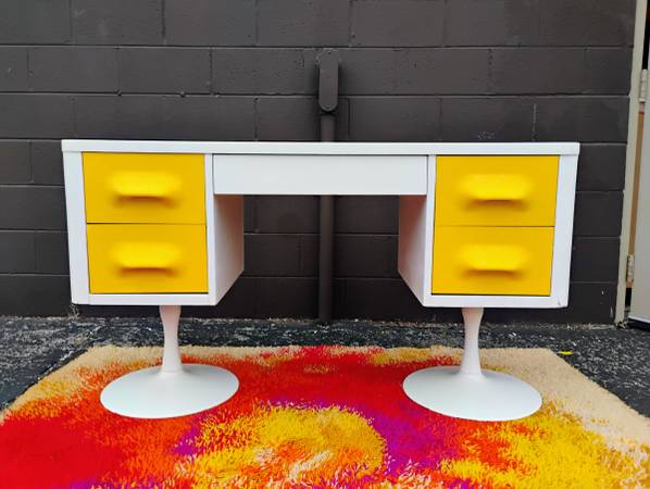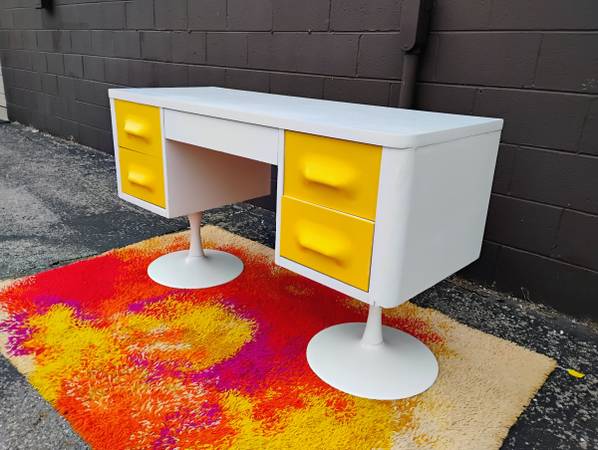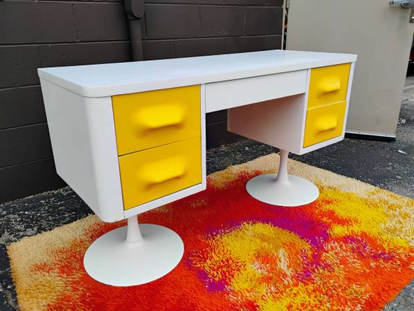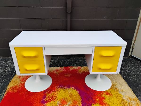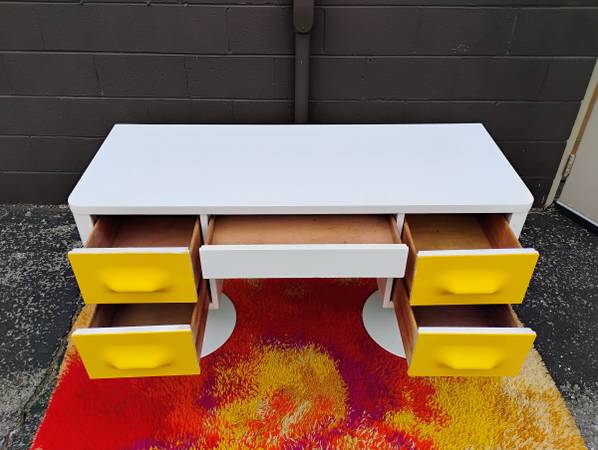 Rare Space Age Chapter One Desk by Broyhill. Circa 1970, style of Raymond Loewy's DF200 French line. Fronts are original molded plastic with recessed handles