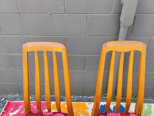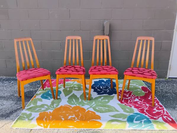 Set of 4 Benny Linden Teak Dining Chairs 38h 18w 19d 19 f to s 16 f to b We don't text any numbers use any codes accept checks give out our number or respond to available is available or I am...