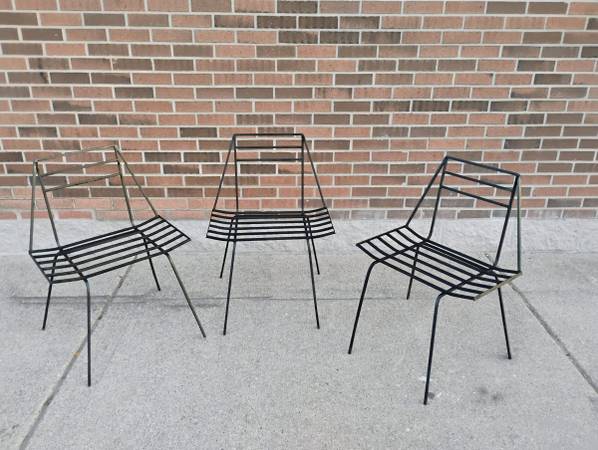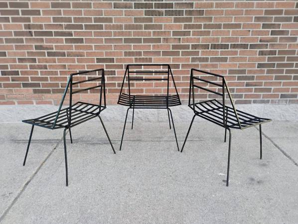 Set of 3 Vintage Unique Wrought Iron Patio Chairs Recently resprayed We don't text any numbers use any codes accept checks give out our number or respond to available is available or I am interested