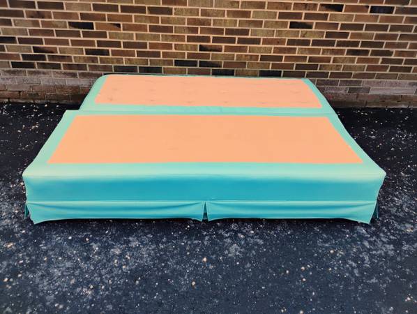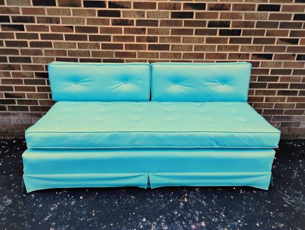 Vintage Simmons Daybed Robins Egg Blue Vinyl Time Capsule 33h 70w 28d 19 .5 f to s 23 f to b 56w as double We don't text any numbers use any codes accept checks give out our number or respond to...
