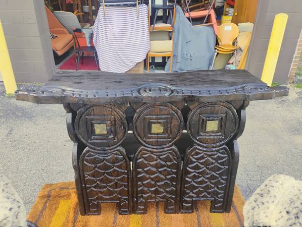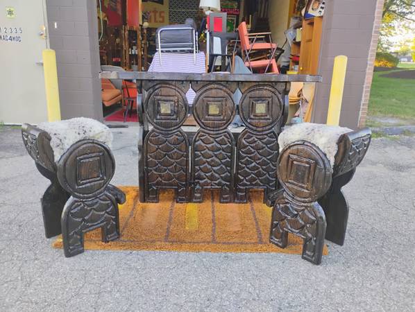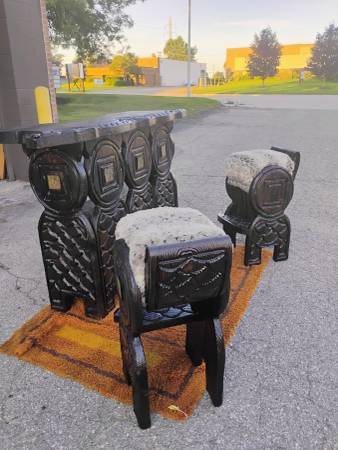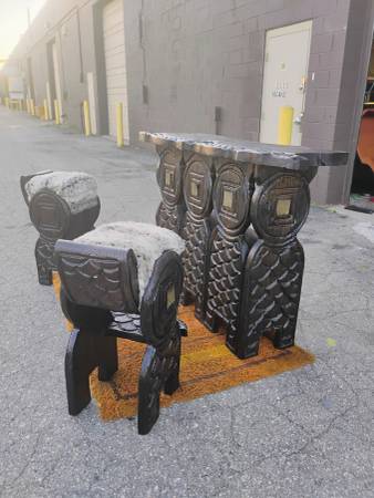 Unique and One of a kind! Wood carved dragon Bar and Stools Marco Polo Bar: 43h 68w 20d Stools: 31h 16w 20d We don't text any numbers use any codes accept checks give out our number or respond to...