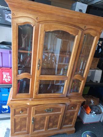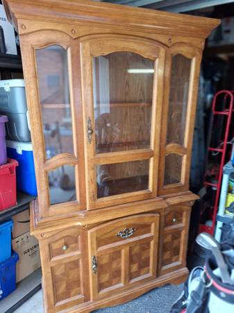 DINING ROOM HUTCH TRADITIONAL STYLE BASSETT LIGHTED EXCELLENT CONDITION STORAGE BELOW TEXT OR CALL # IN REPLY