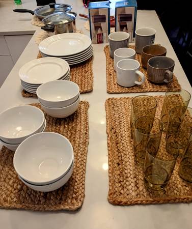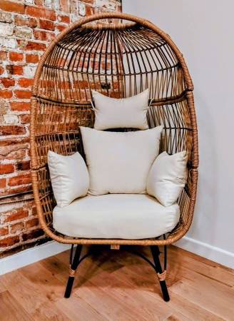 Items available for sale: The Nest wicker chair - $375 4 High chair bar stools - $150 Yellow wingback chair - $400 Fuchsia couch- $600 MUST bring a person(s) to help move this item and proper...