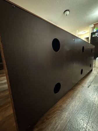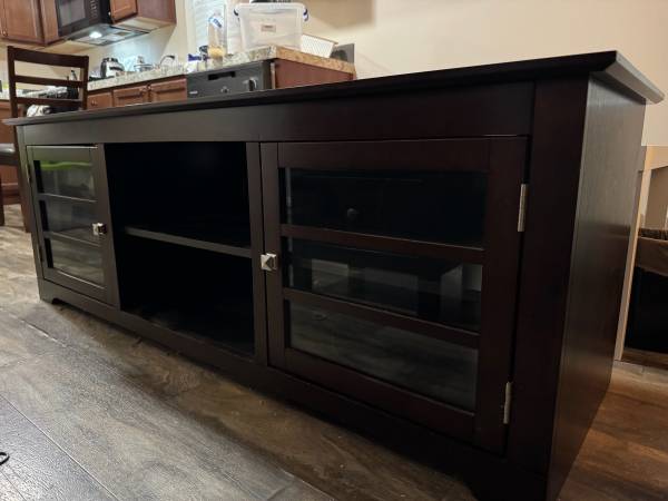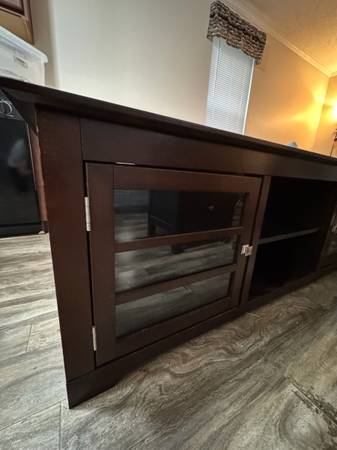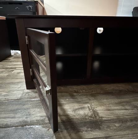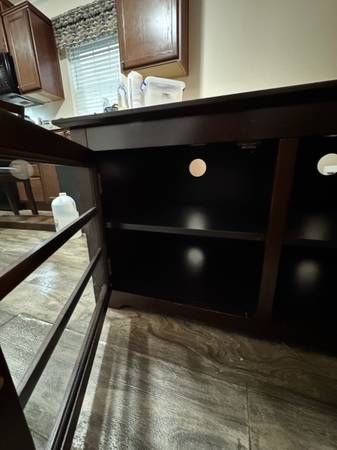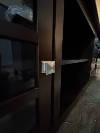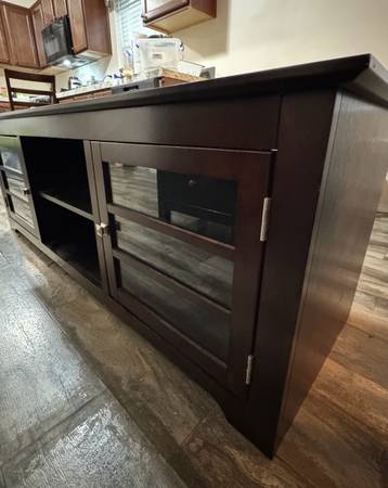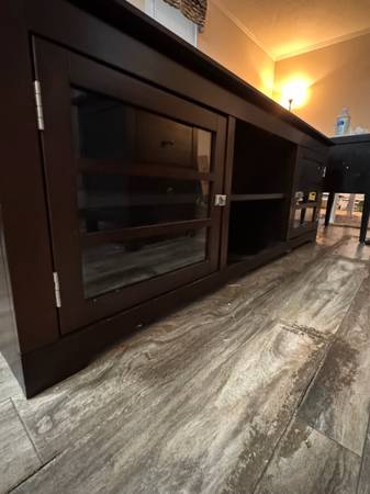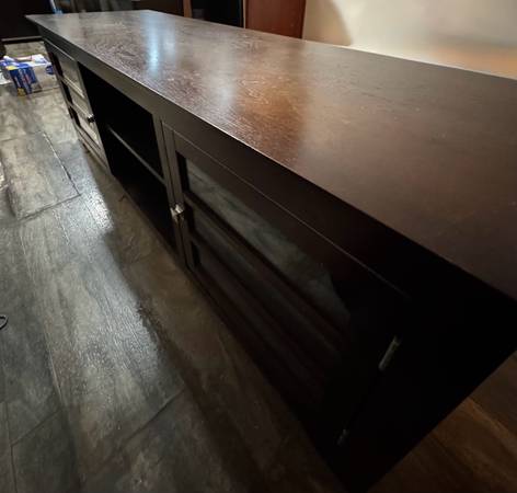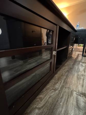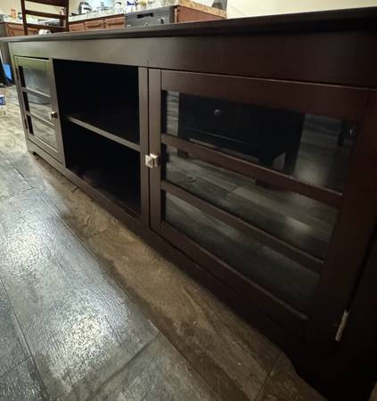 Very classy, modern, and elegant. I’ve barely used it because I had it in storage for a good amount of time. Now I’m leaving town and don’t have a need for it. The quality on this is 10/10….. way better than any other flimsy ones that you’ll see. It also has cabinets and shelves for storage. Originally I paid $600 + tax. I can probably negotiate a bit but it has to be fair for both of us. Ask me and I’ll work with you :)