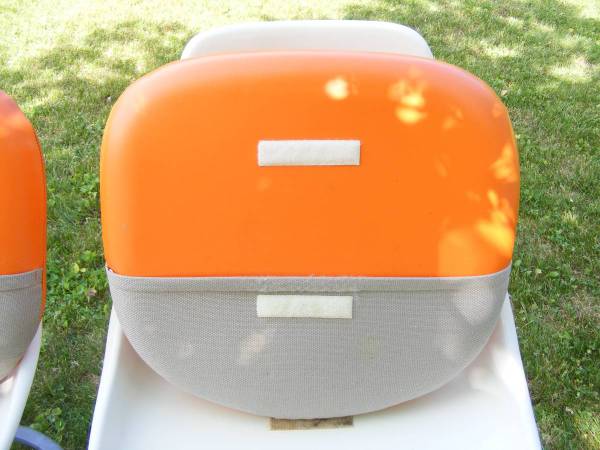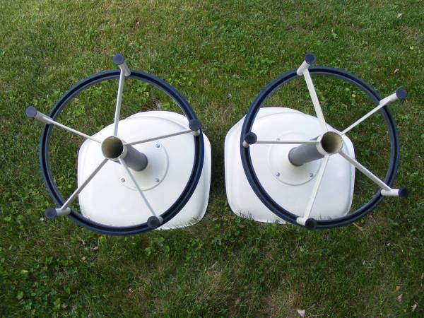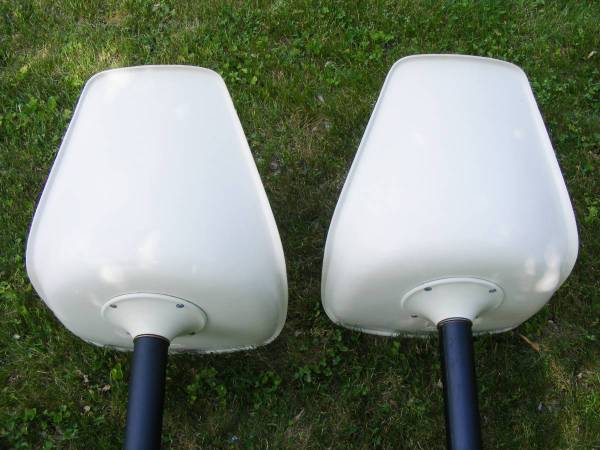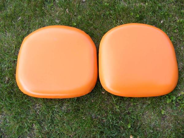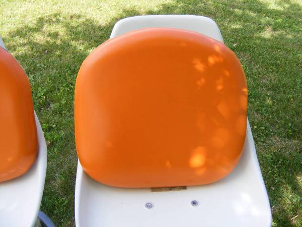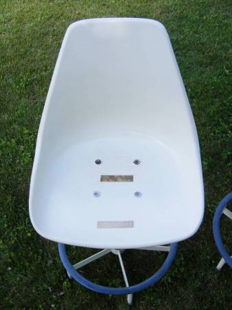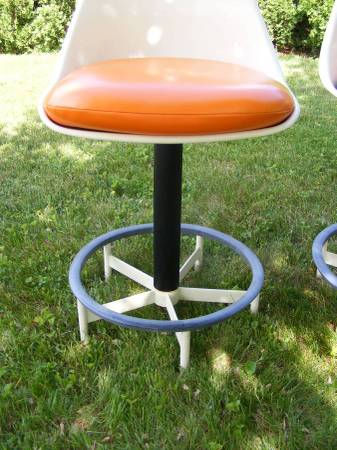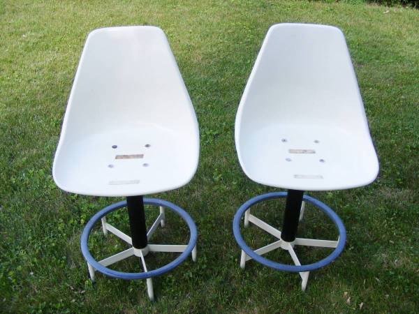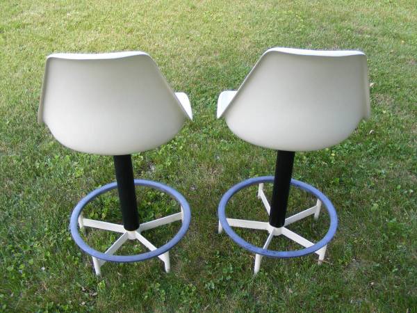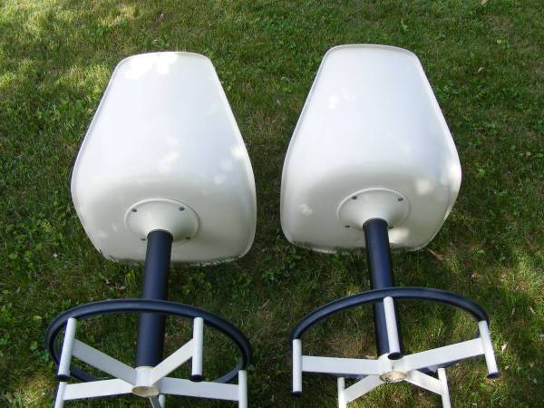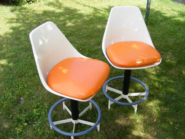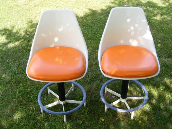 I have a very cool pair of vintage Burke fiberglass shell swivel stools for sale. Very nice condition. The seat coverings are vinyl. Chairs show some age-appropriate wear, but overall they're both in excellent shape. There are no chips or cracks on the chairs, and the cushions are tear free.