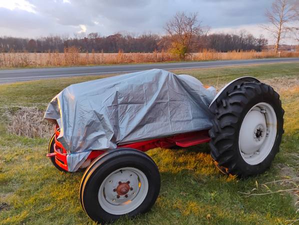 Image shows a classic Ford 8N tractor with an attached two-bottom plow implement. Produced between 1947 and 1952, the 8N is one of the most iconic and popular American utility tractors ever made,...
