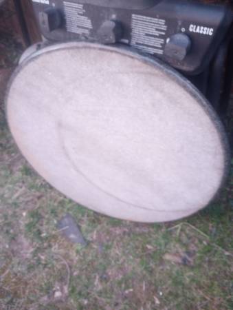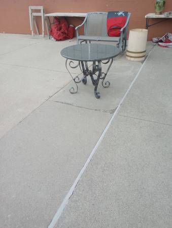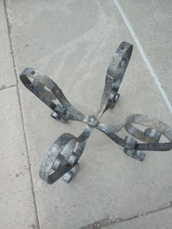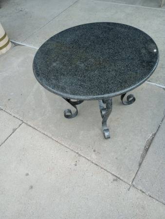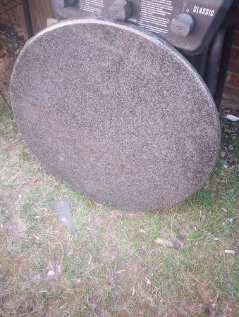 Top is 32 inch across 1 inch thick setting on the base it's 34 inches high the base is old heavy wrought iron heavy enough to handle the weight of the top be Great on the patio or would look good in the house call or text to see 313407one4six8 James 7 mi Gratiot area