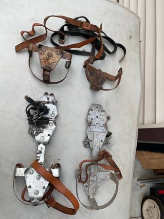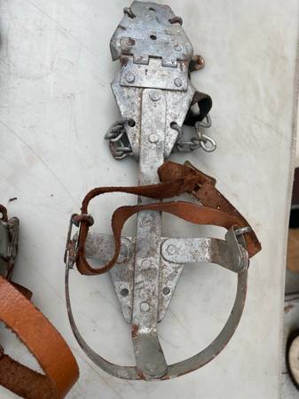 I have a pair of vintage shoe spikes for sale. Look at the pics. They strap to the bottom of your shoe or boot to give you traction on the ice or mud or whatever is difficult to walk on. I threw in...