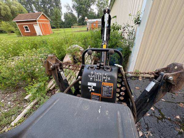 No dents, dings, bends or damages at all. All control handle rubber is in good condition, seat is in good condition no cracks. The unit has a digging depth of 8ft and 1250 lbs. lift capacity.