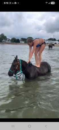 Here is an awesome prospect for kids moving up to the next level. Amazing quarter pony cross ready for any adventure. She would be a perfect young rider step up in the gymkhana world. Been shown extensively and is always in the ribbons. Jumps and does all gymkhana games. Qualified to show at the State 4h show this year! Very easy keeper, fast but doesn't get hot, loads, bathes, ties, rides double. Very sweet loving attitude. Cannot say enough about this brave pony. Sadly rider has outgrown her. She is 13.3 hands. Come try her out, the real deal, wont disappoint! Located SE Michigan