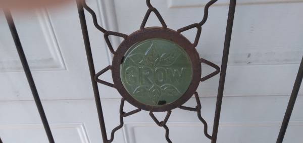 Trellis THICK METAL ROD with GLASS MEDALLION, Supports Climbing