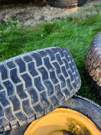 A full set of garden tractors wheels with tires off a craftsman pro series 8400. Rear tires in good condition. Front tires in fair cond. 100 takes them.all. enlarge the pics to see tires size