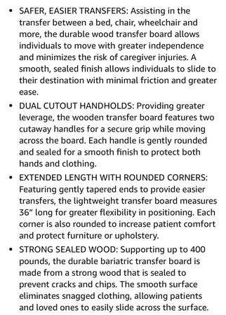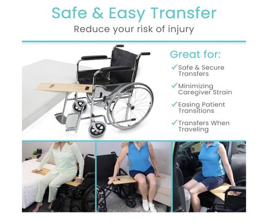 New Great for transferring in and out of bed. Into and out of vehicles. In and out of wheelchairs, etc. Great for elderly, disabled, seniors and patients. Wood. 12” x 36”. See pictures for more info.
