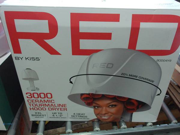 Red by Kiss 3000 Ceramic Tourmaline Professional Hood Dryer, 4 Heat Settings Blow Dryer for Home & Salon, Height Adjustable Convenient Big Hood Size Extra Coverage (1875 Wattage), Model #...