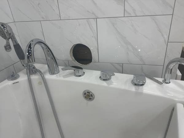 New walk in tub with therapy and safety fast fill faucets and quick drain