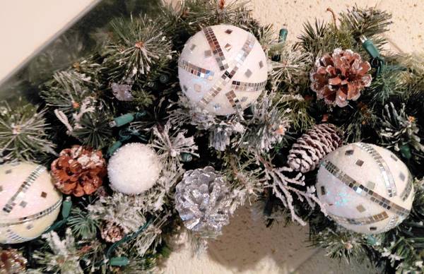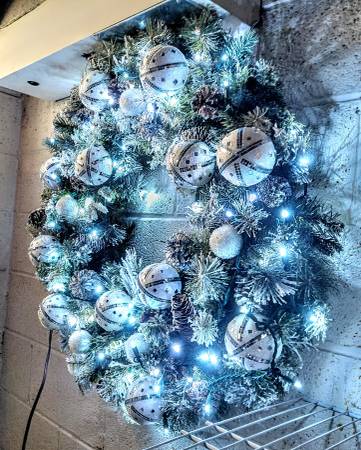 Approximate Cost of materials wreath $70 at English Gardens LED lights $20 ornaments $20