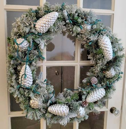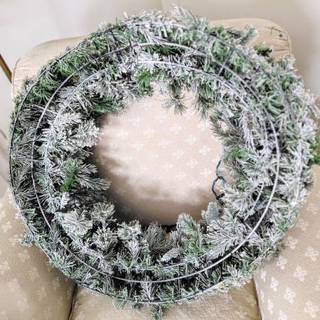 Custom made all from English Gardens Snowflocked Wreath 30" cost $48