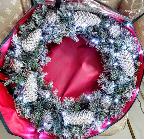 30" Storage wreath holder Clear Lid w/handle Canvas base $25.