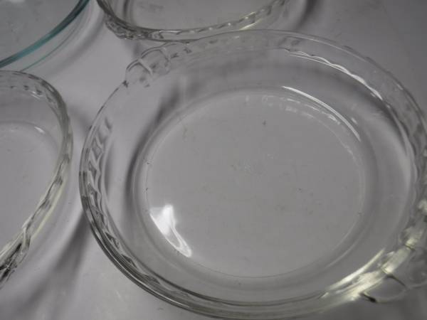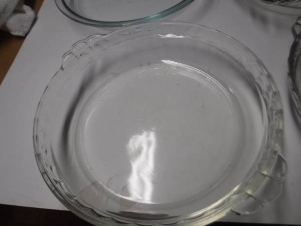 I have a glass pie plates for sale. Look at the pics. 9 inch. PYREX. Three have handles. Shipping available. Cooking, Apple, apples, Cherry, Baking, Canning, 9", Stove, Pie, Only the smooth one is...