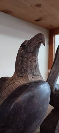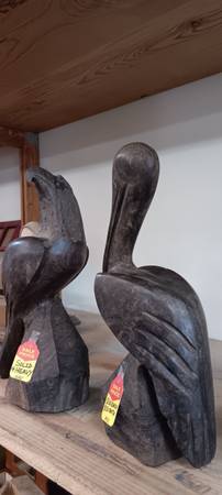 Hand-carved solid wood Eagle & Pelican statues. Dark wood. Approximately 3 Lbs each. $30 Each $50 Both Pickup location: #35 @ Nina's Indoor Marketplace 3630 Fort St Thur - Mon 10AM - 6PM