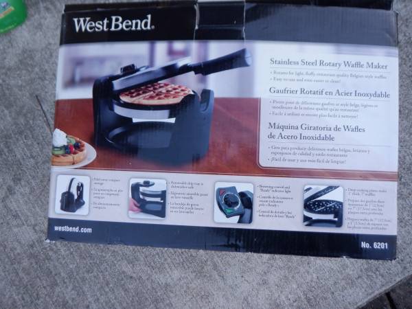 IF THIS AD IS STILL LISTED HERE THEN I STILL HAVE IT!!!!!!!!!!!!!!!!!!!!!!!!!!!!!!!! Wonderaffle Stuffed Waffle Iron - NEW - $35.00 Westbend Rotary Waffle Maker - NEW - $30.00 Serious Inquiries ONLY...