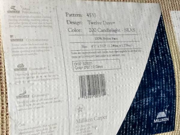 Milliken Christmas Rug 4'x6' (4'1" x 5'10"actual) 12 Days of Christmas Pattern #4533 Design: Twelve Days