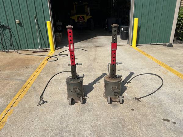 Gray Manufacturing Model TAJ 2000. 10 ton capacity each. Working range 18" (collapsed) to 52" (fully extended). Each with extensions. Once raised, can be pinned and used as jack stands. 8 to choose from, however all jacks need new seal kits installed, which are not included. (Seal kits are $200 each). Price is $500 each