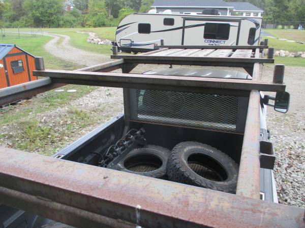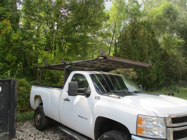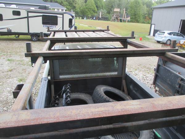 NO EMAIL This is a super heavy duty welded frame rack. Used to carry pipe for construction sites, very heavy, bolted to bed frame of the 8 foot bed of a Chevrolet Silverado. Includes the bed liner that has been cut for the rack. This rack is a work horse. Truck cab protection on top and for the rear window as shown in pics. Make offer. Thanks for looking, Tom