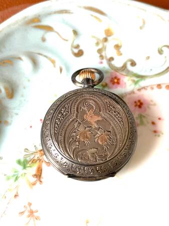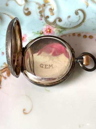 Late 1880’s -1892 Victorian British Pocket Watch The Gem Smaller Watch Beautiful Dial .935 Silver Soaring Bird Case Pin Set Movement Protective Cover Non Running Beautiful Watch
