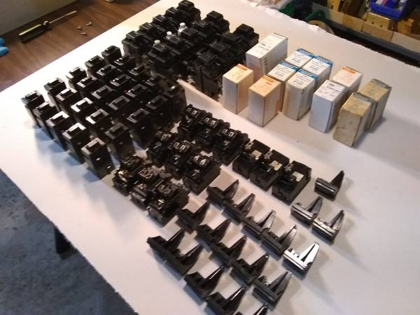 One lot of new and previously used ITE Gould Pushmatic Circuit Breakers, all used checked good.