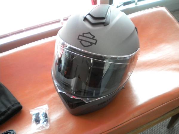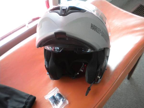 Harley Davidson Large Size Outrush R Modular Bluetooth Helmet Matte Silver, Like New! This fully-equipped modular helmet has hands-free sound and communication experience. Tripled-vented cooling and a full-integrated sound system. Bluetooth 5.0 capabilities, with advanced noise control and wind noise reduction to an integrated speaker and microphone system that supports up to 4 riders. Comes as seen in pics. Please call show contact info