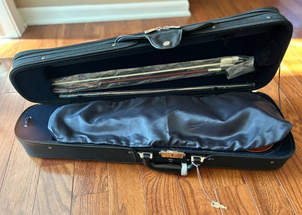 *** Everything New *** Franz Hoffman Maestro Violin 1/2 Sz Outfit and Accessories: Toshira Deluxe TC100 Violin Case (Blue Velvet Interior), with lock and keys(2). Meinel Pernambuco Violin Bow...