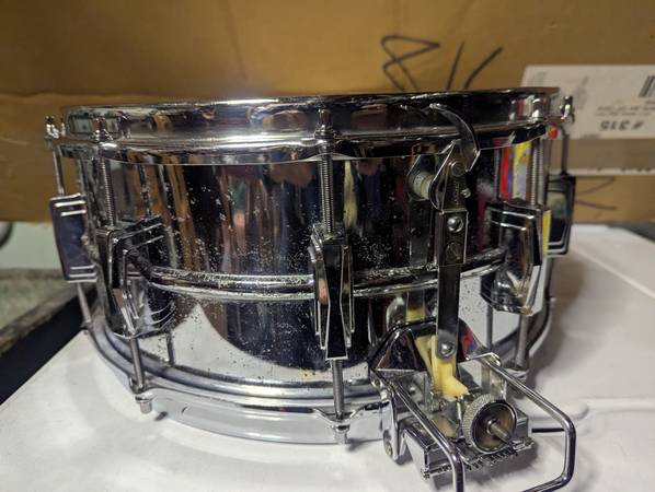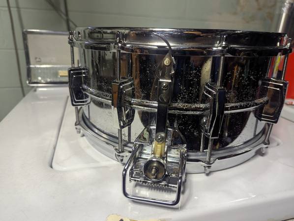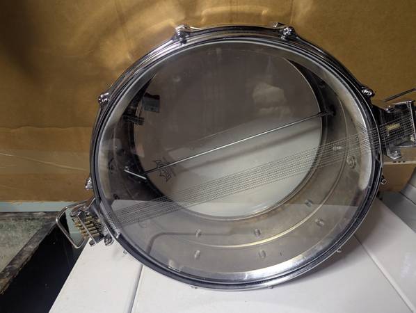 1964 KEYSTONE BADGE LUDWIG 10 LUG SUPERSENSITIVE SNARE DRUM. SHELL IS 6 1/2 X14. HEADS AND SNARE WIRES ARE FINE. THE SHELL HAS THE USUAL POCKMARKS INDICATIVE OF THIS MODEL SNARE DRUM. BUT THE TONE AND RESPONSE ARE FANTASTIC. $595 FIRM. SORRY CALLS ONLY!! NO RESPONSES TO EMAILS, TEXTS, OR CHATS. THIS IS A HEAVY SHELL DRUM. CALL show contact info
