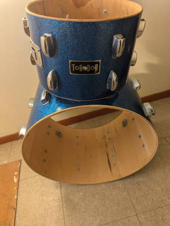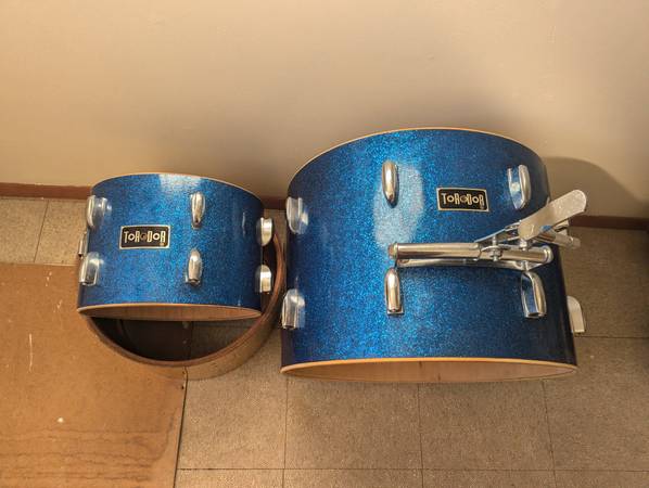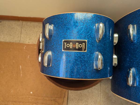 VERY CLEAN TORODOR 20" BASSS DRUM AND 12" TOM TOM. MADE IN JAPAN. VERY BRIGHT BLUE GLITTER WRAP. ALL CHROME ON LUGS AND TOM CONSOLETTE IS FINE. $110 FOR BOTH DRUMS AS PICTURED. CALL . CALLS ONLY I...