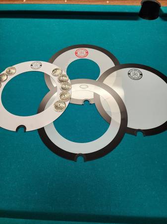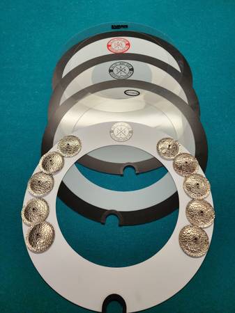3 Big Fat 14" snare drum zero rings and 1-14" Halo Tambourine zero ring, and a set of Big Fat Quesidilla drumset mutes in sizes 10,12,14,16 all in like new condition. $80 dollars for all of them....