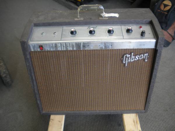 1963 Gibson GA17RVT Guitar Tube Amplifier Amp With Reverberation, Tremolo and Loudness. Includes a Reverb and Tremolo Foot Pedal. The amp powers up and works but has a buzzing and humming noise. Would need to be gone thru to make it 100% functioning correctly. Good overall cosmetic condition for it age. Comes as seen in pics. Please call show contact info