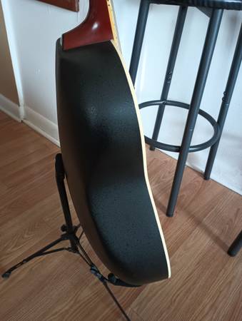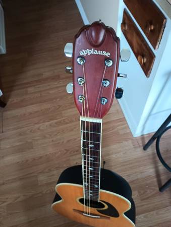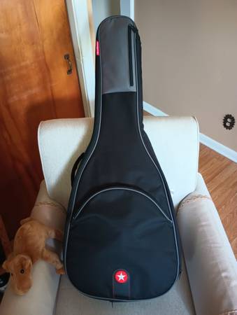 Everything in the pictures comes with it. Set of ernie ball earthwood strings, picks, strap, digital tuner, capo, and nice roadrunner padded gig bag. I also put an anti-slip pad on it so it stays put when playing and you can hardly tell it's there. Pad is also removable. Sounds very good on it's own or plugged into an amp. Text for more info. Just a nice guitar 👍 Thanks