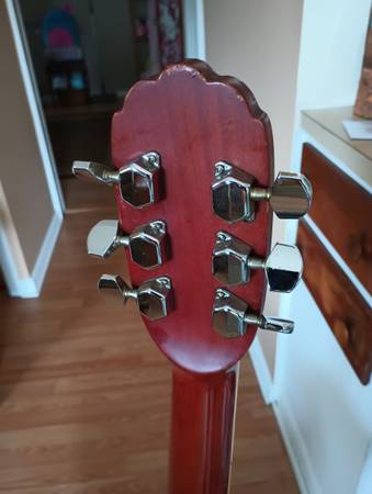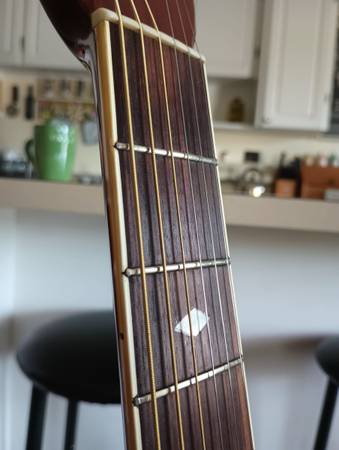 This guitar is in very good shape for its age. Made in the 80's 👍 I set up this guitar myself and it plays very easily. It's one of my favorites. Has new ernie ball earthwood strings on it. Plus i am adding another new set.