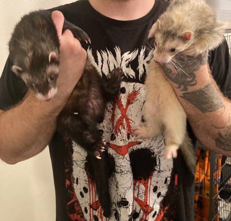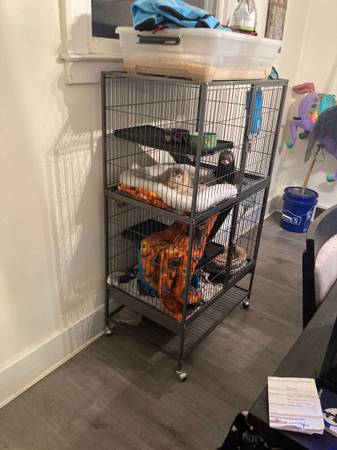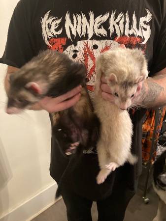 I am looking to rehome my 2 ferrets. They are a bonded pair. Around 3 years old, both fixed. Love to play. Very funny and entertaining. Will come with enclosure, food, and toys. Please text for more...