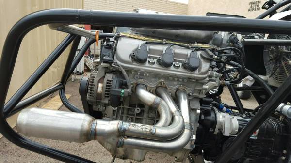 Package Includes: Engine, new in line Fuel Pump, Modified harness, relays and stock ECU, New O2 Sensor, Alternator with new belt, Kennedy Adapter for 200mm - 8" clutch, Kennedy Stage III pressure plate, Kennedy 6 puck clutch for off road OR a Street clutch for on/off road, throttle cable mount plate, PLUS Tom Face dual exhaust system with mufflers. Aprox 250 RWHP!