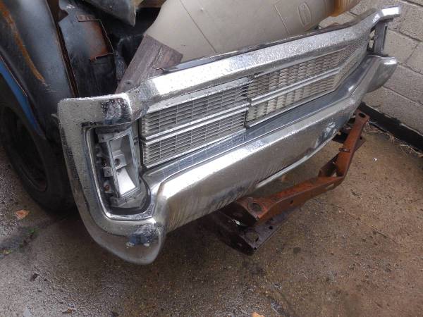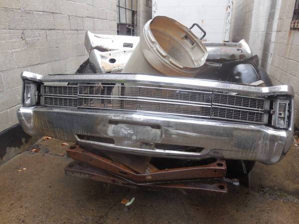 This is a complete front bumper off a 1969 Chrysler Imperial. It has hide-away headlight doors, grille, and park light assys. I have NO OTHER parts for this car! If you look at the last couple pics you'll see that the previous owner of the car cut a small chunk off each side of the bottom. I have no idea why but you don't really see it unless youre on the ground looking up lol! Call if interested. Thanx