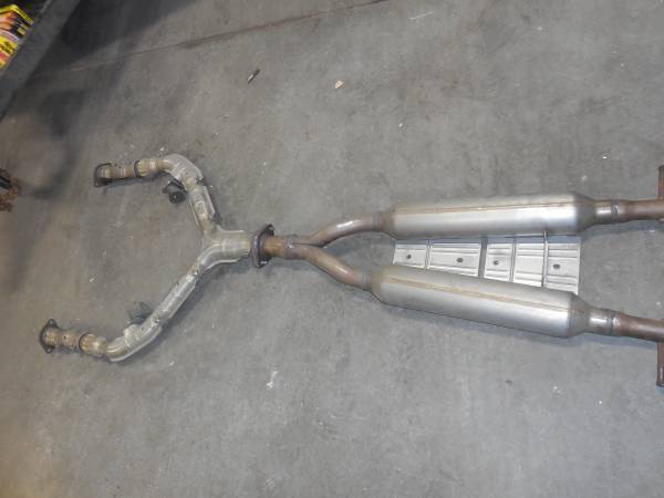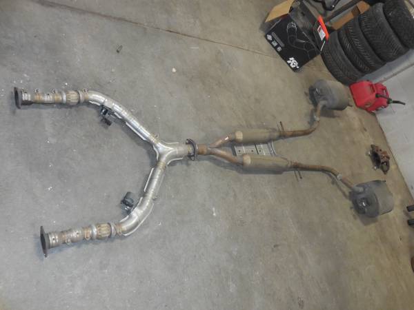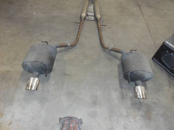 A friend of mine owns commercial buildings in the area and one of his tenants called it quits and left some Tuner/foreign performance parts in the building. I am listing what I think can be sold but I know little to nothing about euro/Asian cars so you will have to determine if these are what you need. This is a new take off Nissan DUAL EXHAUST FROM CATS BACK. Not sure what year or model but there is a Nissan part# on the front mufflers which is:20300 JU 60A FUTABA 1N. This is a 2 piece system and front has all the stainless flex pipes! Rear half has factory mufflers with polished sport tips. If anyone passes on the year and models, I'll add it but this is a NEW system! The photos should identify it. I don't know what it fits so it's encumbent on purchaser to decide if they will fit their car. Will also be listing one for a Honda single exhaust and one other that looks like a Porsche to me but could be Japanese, German, or Italian. Also a bunch of wheels, tires, (4) Miglia 1000 16" and (3) 17" Borbets as well. Call for apt to inspect or purchase. Thanx