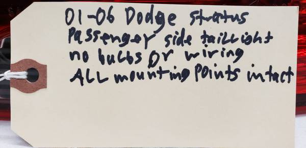 01-06 dodge stratus passenger side taillight,used, OEM, excellent condition,all mounting points intact, no bulbs or wiring, please call or text 313 five nine zero 1139,please leave a message if I don't answer and I will get back to you as soon as possible,thank you.