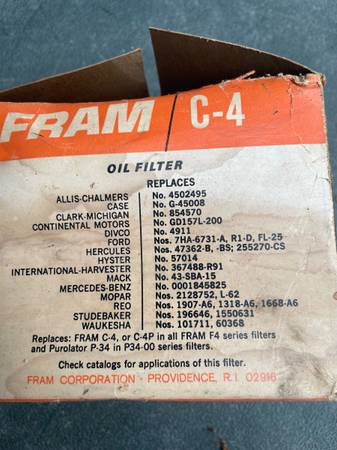 I have a Fram C4 for sale. Look at the pics. NOS. Shipping available. Truck. Tractor. GM 1955, 1956, 1957, 1958, 1959, 1960, Cadillac, Chevrolet, Allis-Chalmers, 1961, 1962, 1963, 1948, 1951, 1952,...