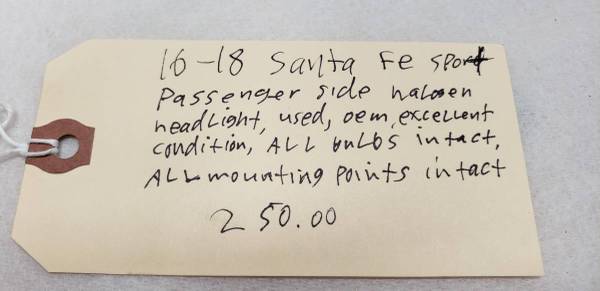 16-18 Hyundai Santa fe passenger side halogen headlight, used, OEM, excellent condition, all bulbs intact, all mounting points intact, please call or text 313 five nine zero 1139, leave a message if I don't answer and I will get back to you as soon as possible, thank you.