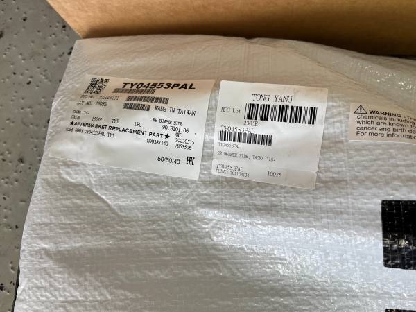 2021 Toyota Tacoma Chrome Bumper End - drivers side, no backup sensor. Aftermarket piece. Retail price, $50.00. Never installed. New in the box. $25. Item sold as is