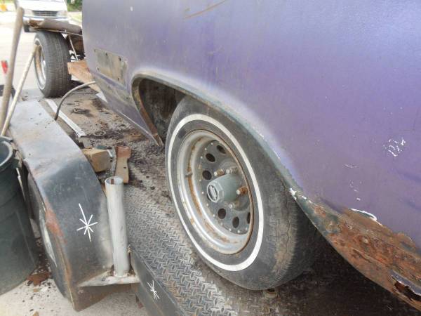 I bought this car for the rh quarter and dragged it back from Wichita, Ks. It was a Texas car but was not as nice as I had hoped it would be or as nice as the guy told me. The panel is useable though with a patch behind the wheel. Hasn't been hit. It is already cut and comes with 3/4 of the tailpanel, trunk floor and back seat floor as seen. Bring a trailer and a couple strong boys if you want it. Thanx