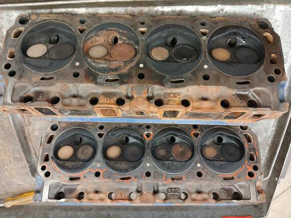 1970 Ford Mustang 302 Cyl Heads Part No. DOOE with screw in rocker studs 3/8" and posi-locks and rockers Complete Needs rebuilt Call Ron Please leave a message!